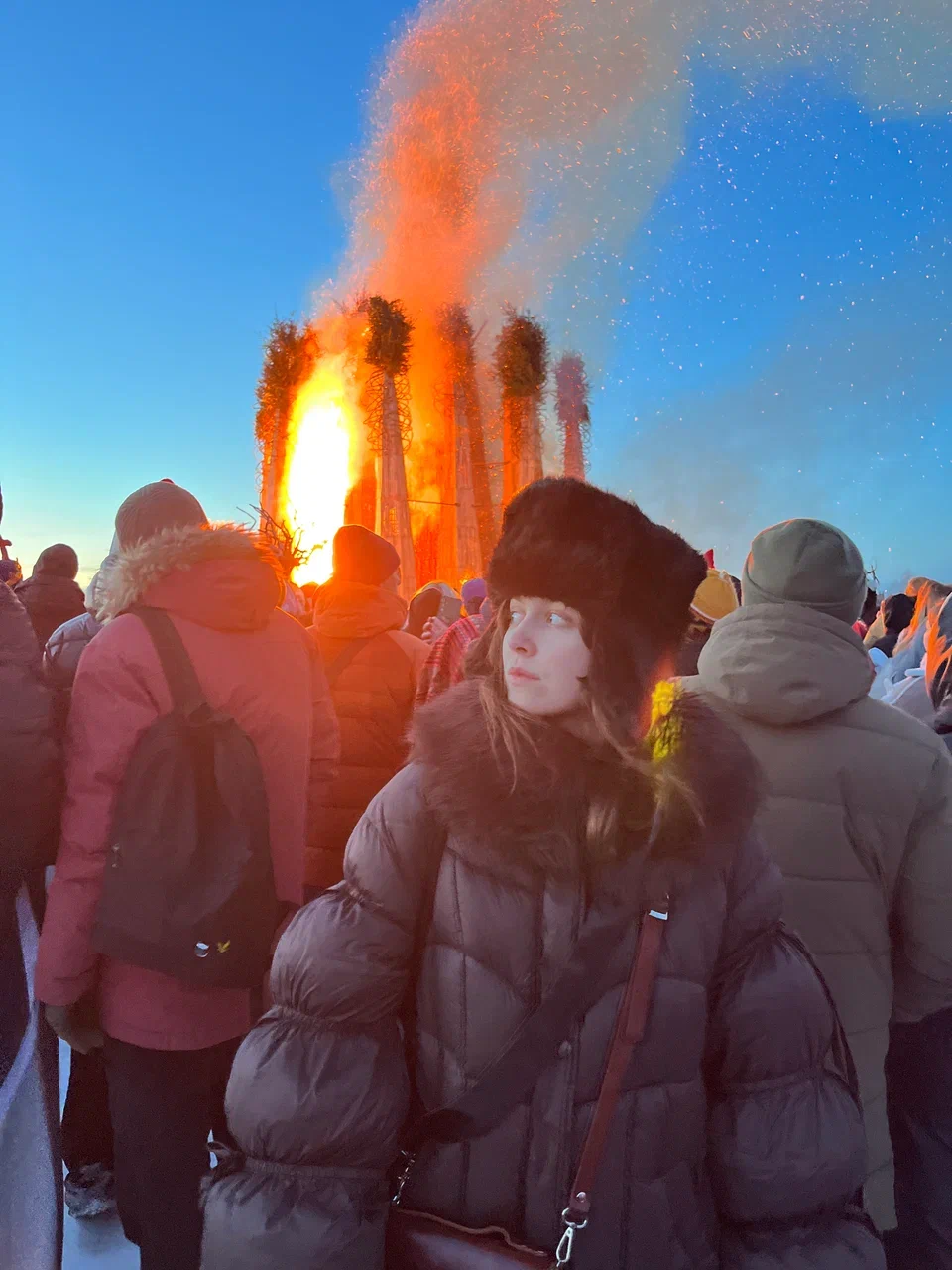 Я никогда не была на масленице в Никола-Ленивце и очень предвкушала это событие! Мне повезло видеть, как на Архстоянии 2024 года «дожигали» часть постройки с масленицы. Открытый гигантский огонь просто заворожил. Поверьте, это впечатляет сильно. Сначала думаешь: «Огонь и огонь, у нас в кемпе есть огонь в костре», а потом загипнотизированно смотришь на пламя и не можешь оторваться от его танца на фоне звездного неба. Поэтому я очень ждала Масленицу.