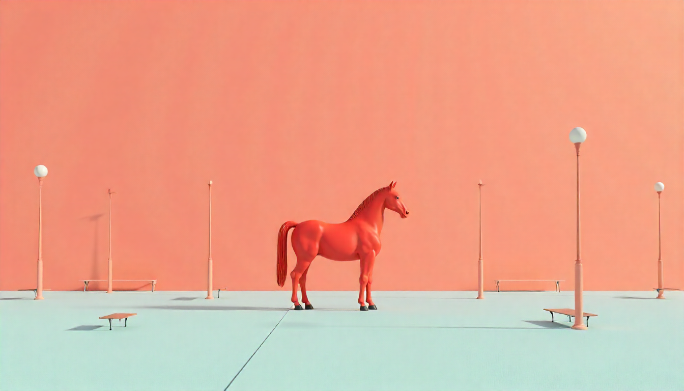 Красные кони в разных обличиях в городе используются повсеместно. Конкретно этот экземпляр гордо вышагивает у местного многофункционального ДК.