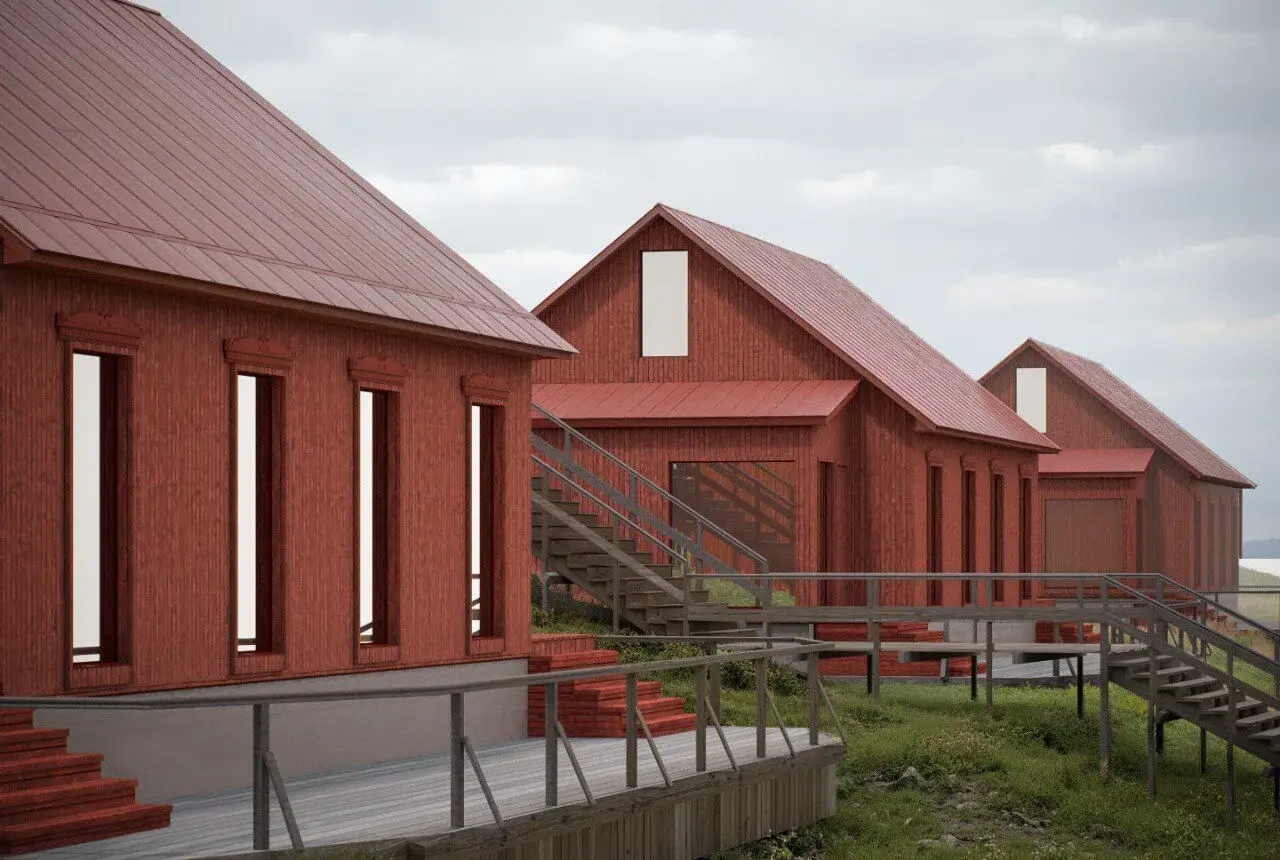 Проект обновления домов-«финок» предполагает превращение оставшихся зданий в гостиничный комплекс. Дело в том, что когда здания возводились в 1920-30-е годы финскими архитекторами и строителями, это был типовой проект для советских поселков. Сегодня в Баренцбурге осталось всего 4 дома. В основу концепции студентов легла утилитарность арктического быта: авторы сохранили деревянный каркас из сосны, но внесли изменения в норвежский стандарт, связав экстерьер и интерьер с суровым индустриальным ландшафтом.