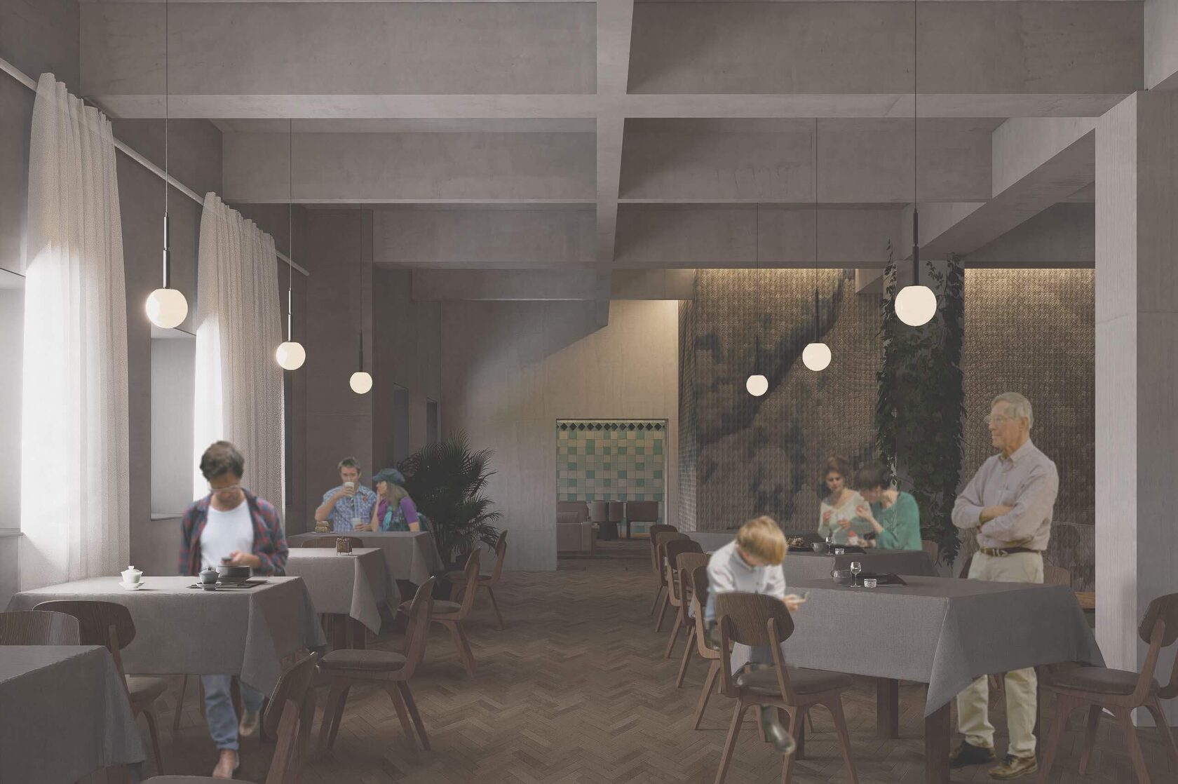 Далее мы задались вопросом, где можем больше выйти из режима сохранения памятника, а где меньше. Бывает, что в исторических зданиях охраняется не все до последнего гвоздя: например, на доме Плисецкого новая крыша, которую построили уже в двухтысячные годы. Ее мы могли изменить в своем проекте, а другие части нет. Это был творческий процесс. Аналогично произошло со зданием столовой, где можно было менять только внутреннюю планировку.