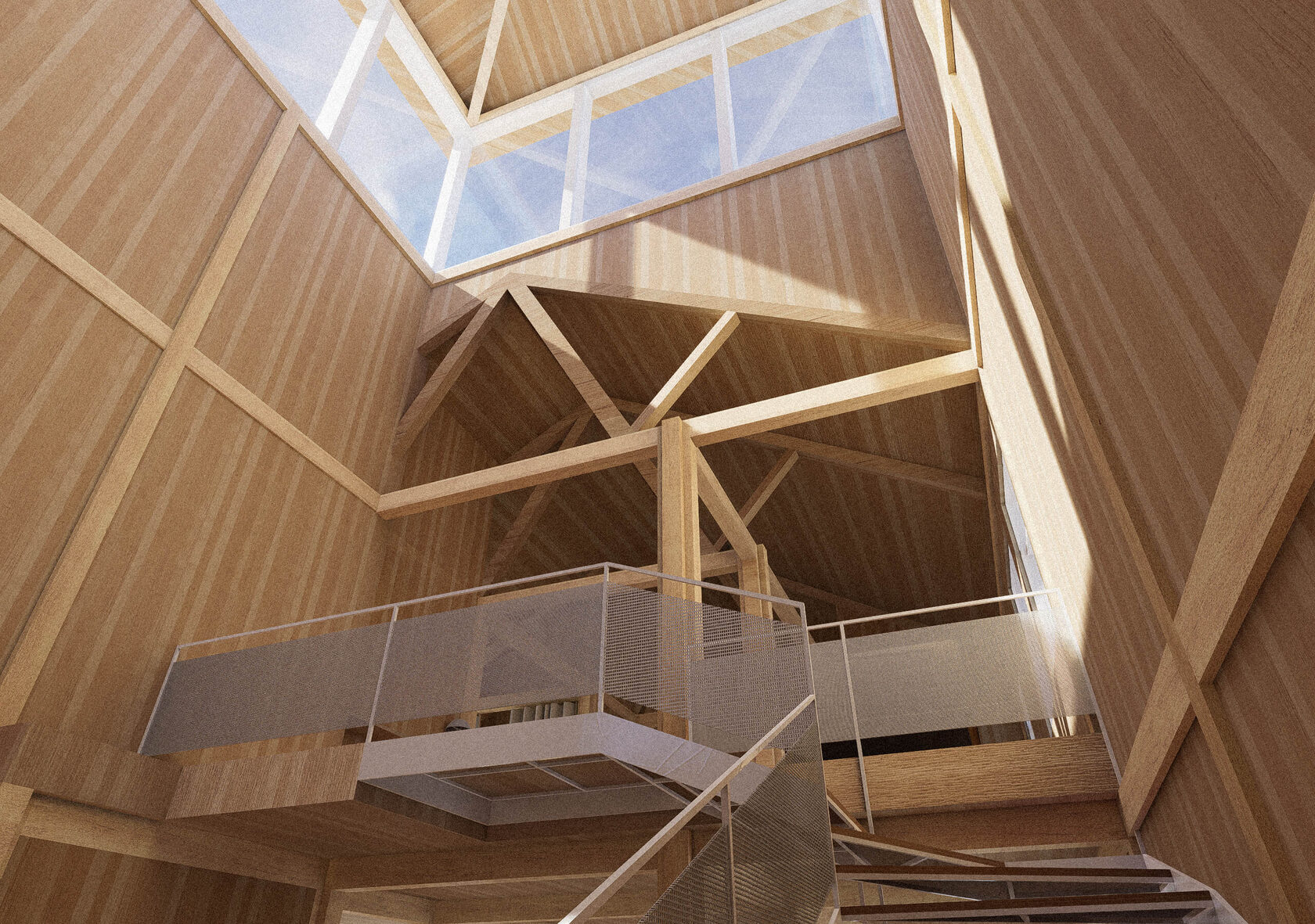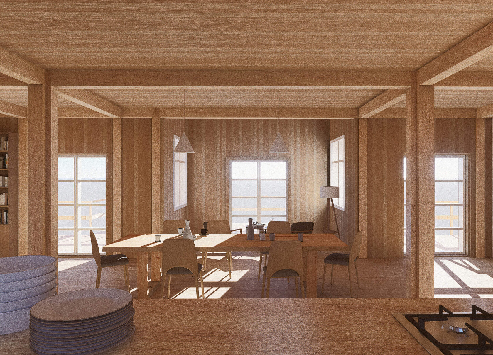 — В самом центре поселка находится старая столовая 1936 года постройки, памятник культурного наследия Норвегии, которая раньше была важным социальным пространством. Сегодня она утратила свои функции, но сохранила потенциал точки притяжения. Проект студентов возвращает ей роль места для встреч и общения с центральным атриумом, который пронизывает все уровни, и теплым интерьером.