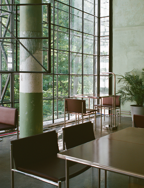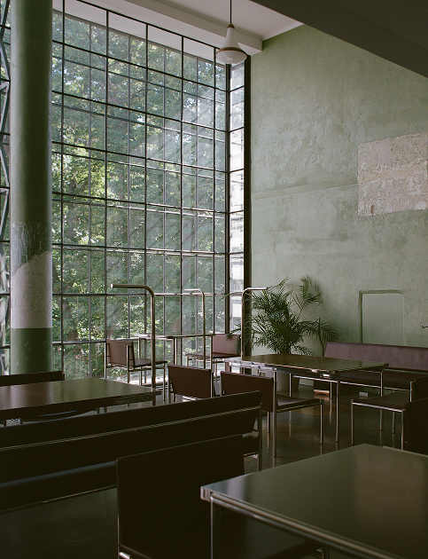 Кафе открыто для жильцов дома, патронов, владельцев карты GARAGE и участников экскурсий. Интерьер ждёт вас на третьем этаже коммунального блока — в нём можно не только выпить кофе с лимонным пирожным, но и увидеть, как исторический контекст встречается с производственной экспертизой MAKE VIBE.