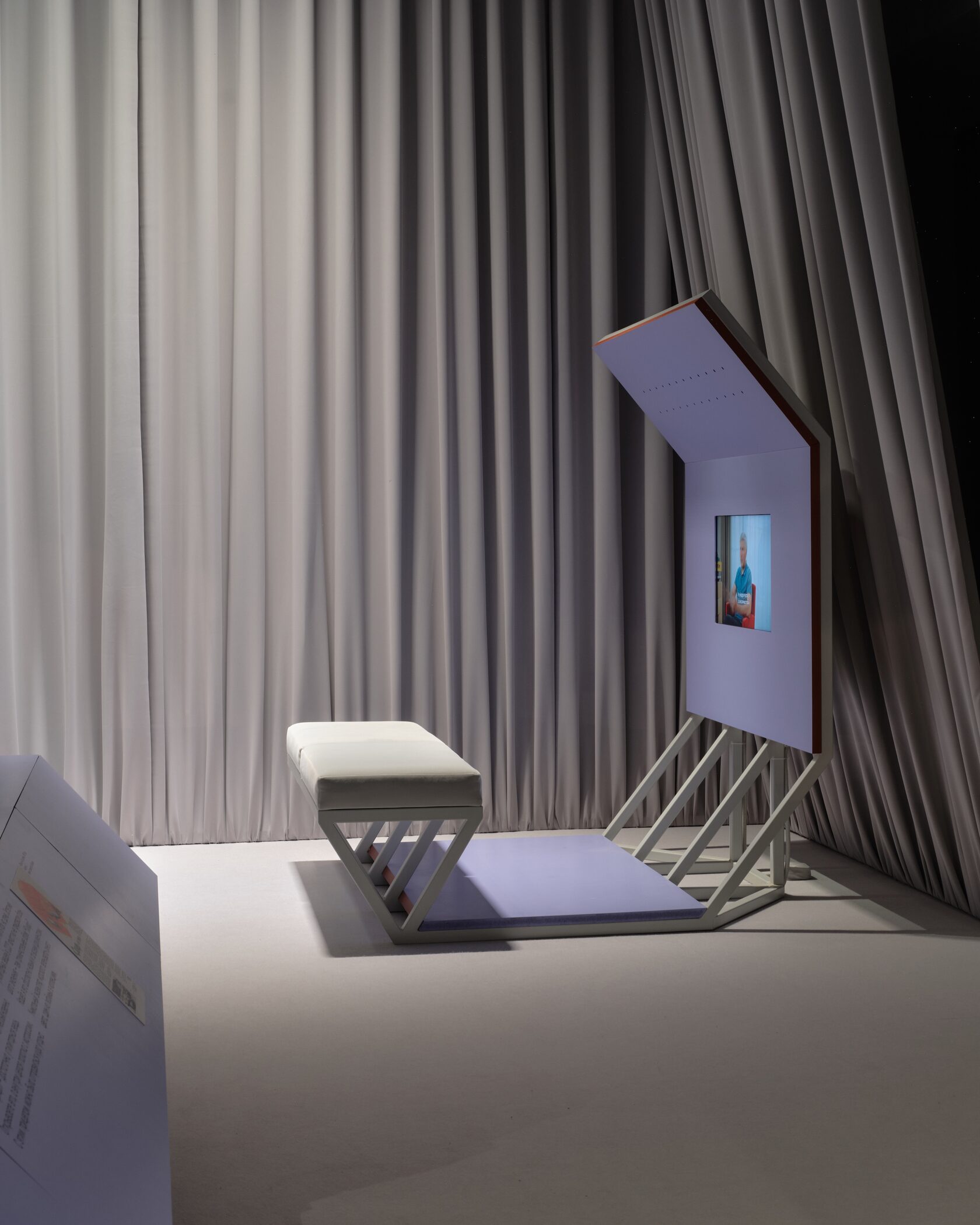 Идейно-пространственная часть экспозиции вдохновлена образами театра и закулисья. Бюро .dpt переосмыслило выставочный зал музея: используя полотна, обтянутые большими объёмами ткани, команда бюро организовала внутри зала самостоятельное архитектурное пространство. Это создало ощущение временной сцены.