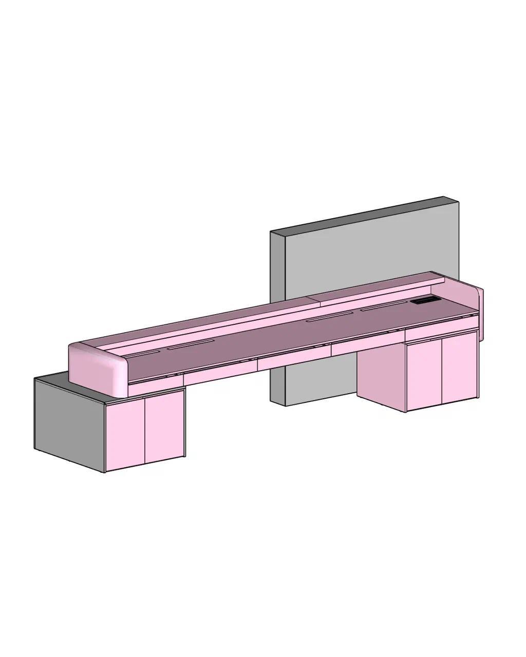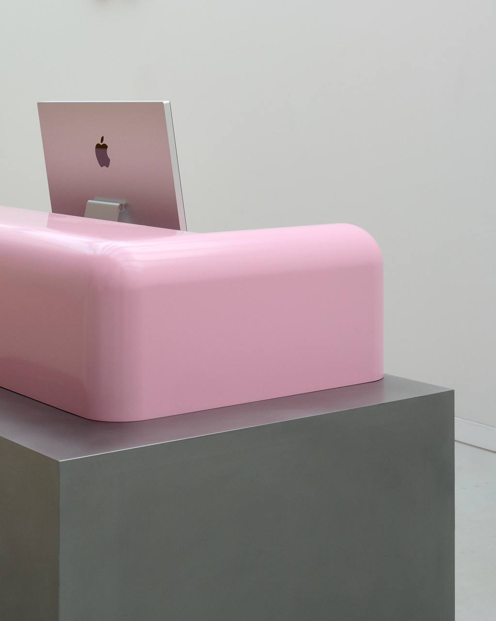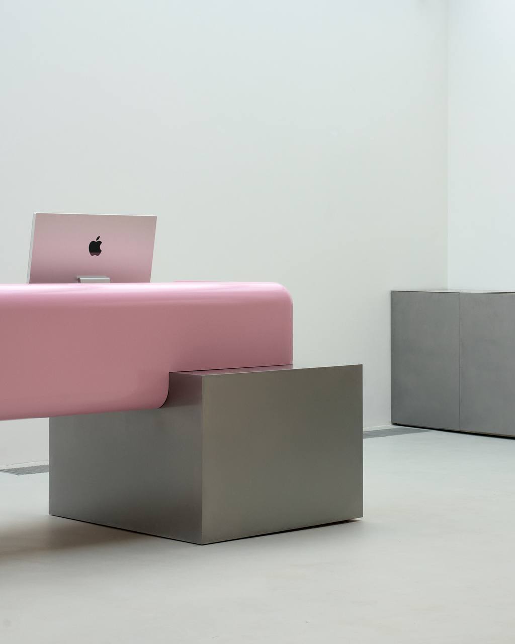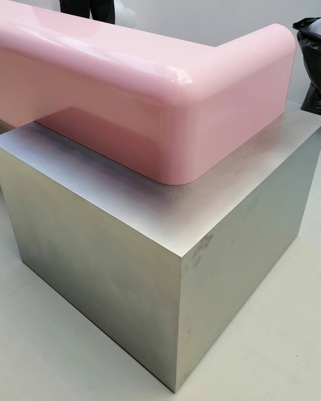 Этот проект был создан специально для кассовой зоны фотоателье UU в Москве, где важны не только функциональность и долговечность, но и выразительный визуальный акцент. В основе концепции — яркий розовый цвет, ставший фирменным жестом пространства: насыщенный, глянцевый, динамичный, он задаёт настроение и делает стойку центральным элементом интерьера.