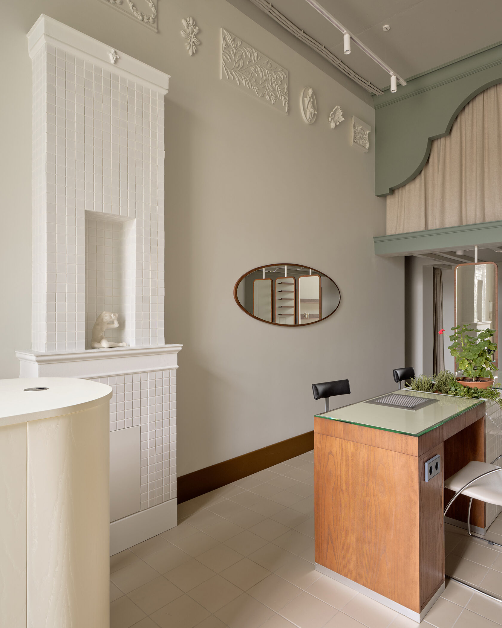 Как результат получилось пространство, которое напрямую обращается к идее красоты, изящества – но при этом обволакивает клиента мягкой заботой, продуманностью и комфортом.
