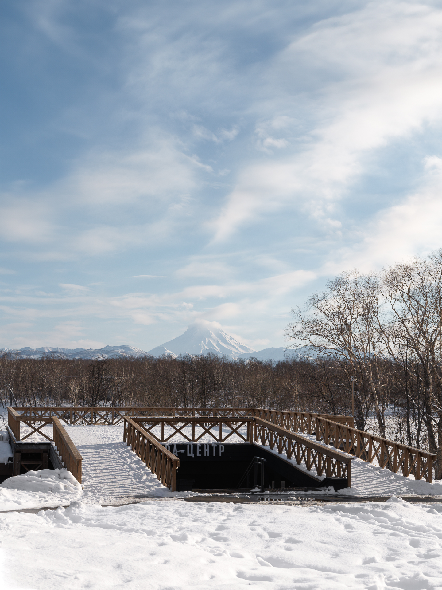 В летнее время гости комплекса могут расположиться на примыкающей к основному зданию террасе с видом на озеро, чтобы воспользоваться ресторанным сервисом под открытым небом, наслаждаясь природными красотами Камчатки.