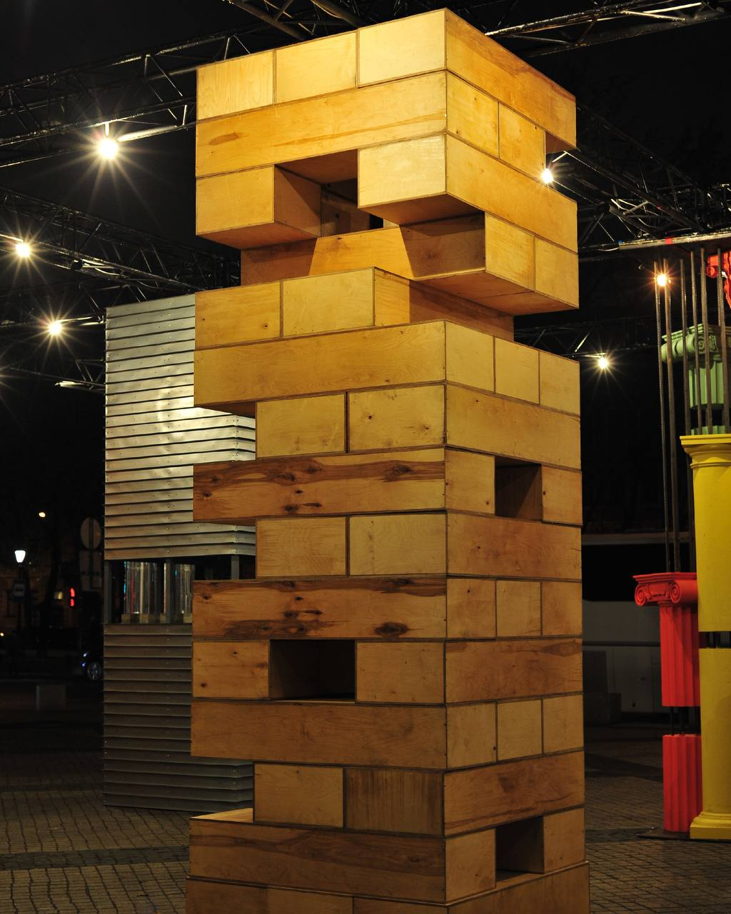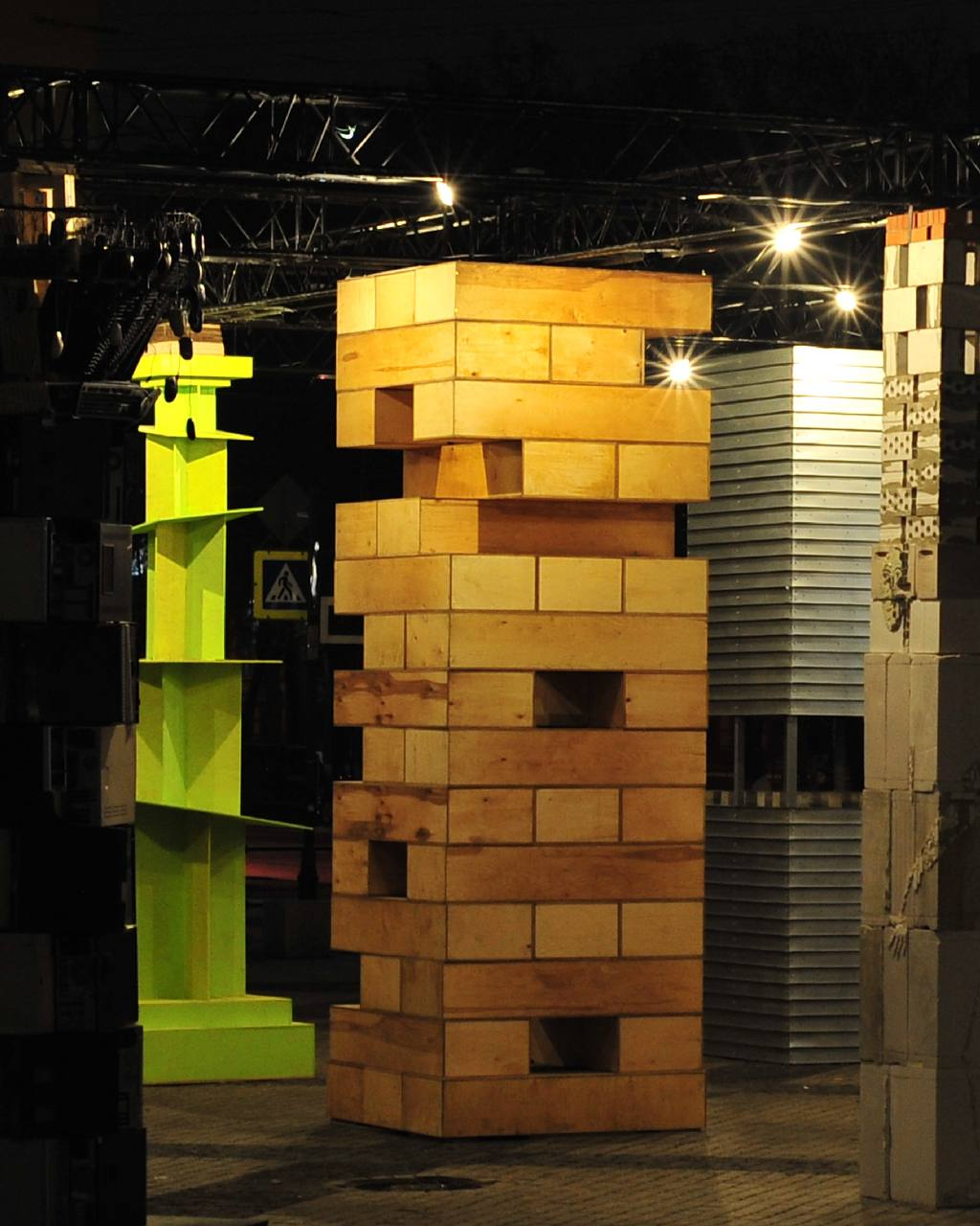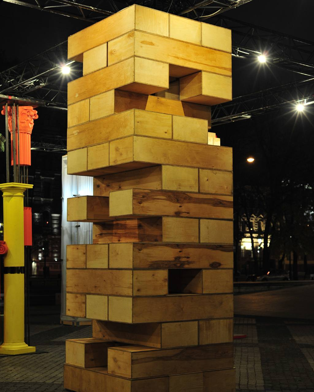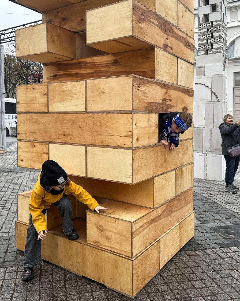 Идея появилась из наблюдения, что Дженга — это не просто игра, а модульно-блочная система, своего рода мини-конструктор архитектуры. Когда мы увеличили масштаб почти в 100 раз, игра буквально превратилась в архитектурный объект, в котором сочетаются и конструкция, и эстетика, и взаимодействие. Можно сказать, мы поиграли в архитекторов, и архитекторы поиграли в Дженгу — причём прямо в центре Петербурга. В итоге получилась Дженга высотой 4,5 метра — как нам удалось узнать из информации в интернете, она занимает первое место по размерам в России, а в мире второе!