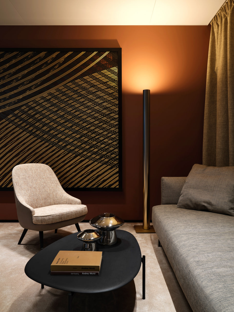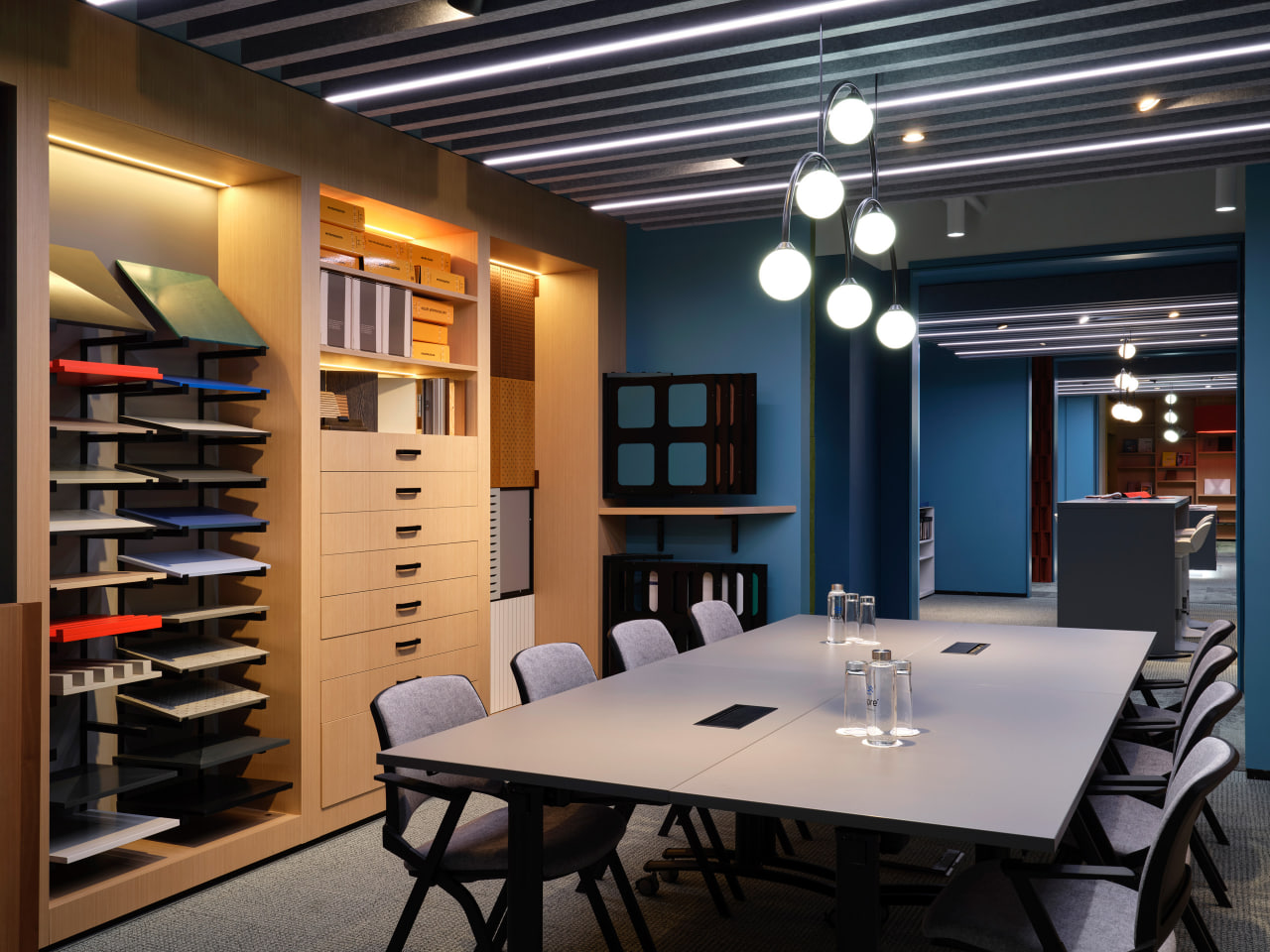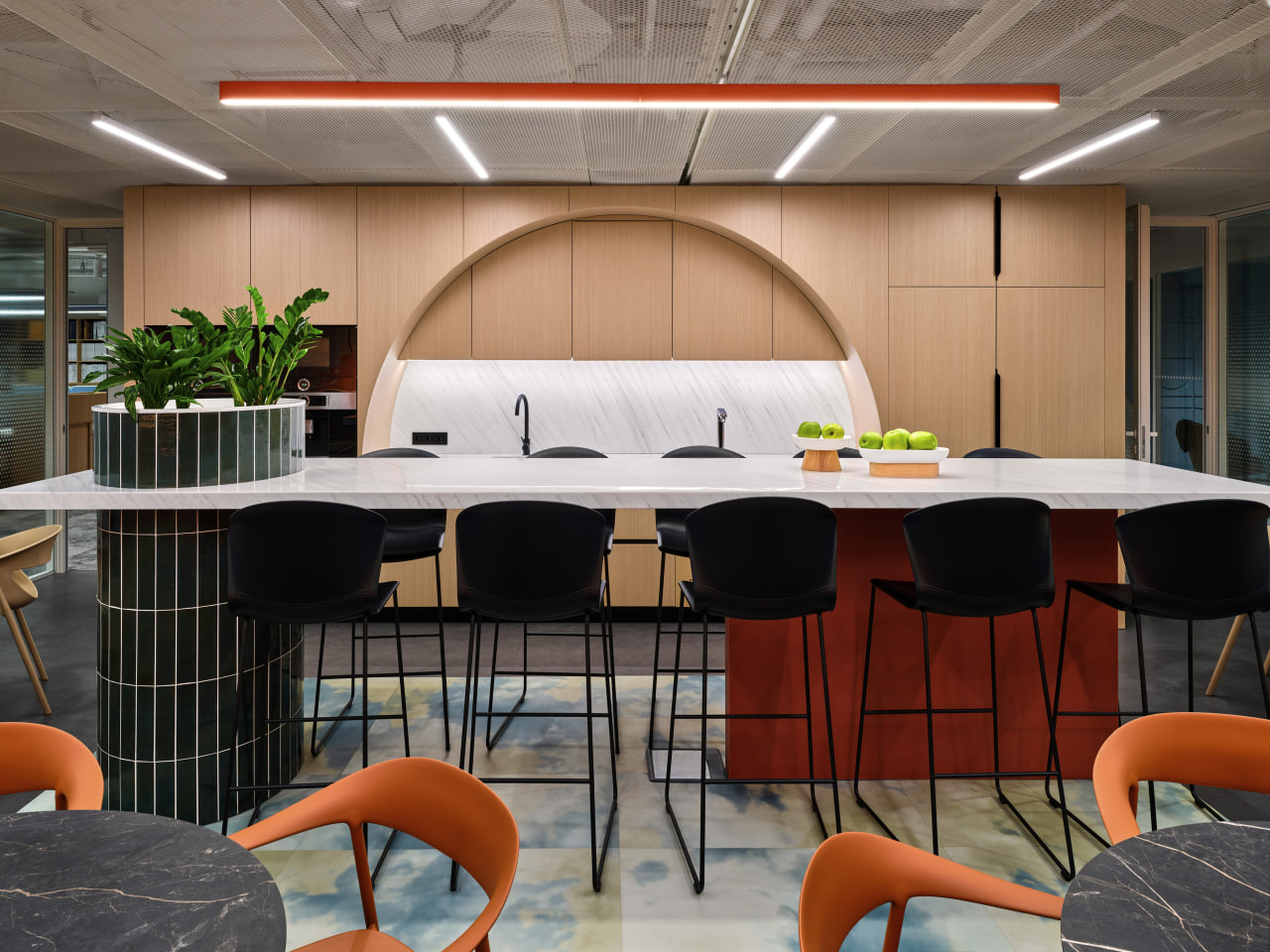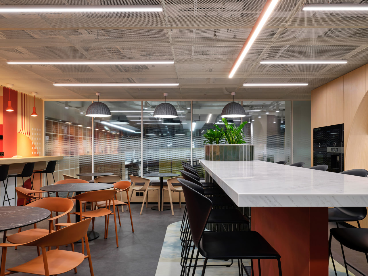 Новая площадка объединила команды более 20 брендов и направлений. Особое внимание в пространстве уделено грамотному зонированию, адаптированному под особенности работы компании. Офис разделен на 3 блока: клиентская зона для бизнес-встреч, зона front office для работы с материалами и зонами совместной работы, backoffice — более уединенное пространство для сосредоточенной работы.