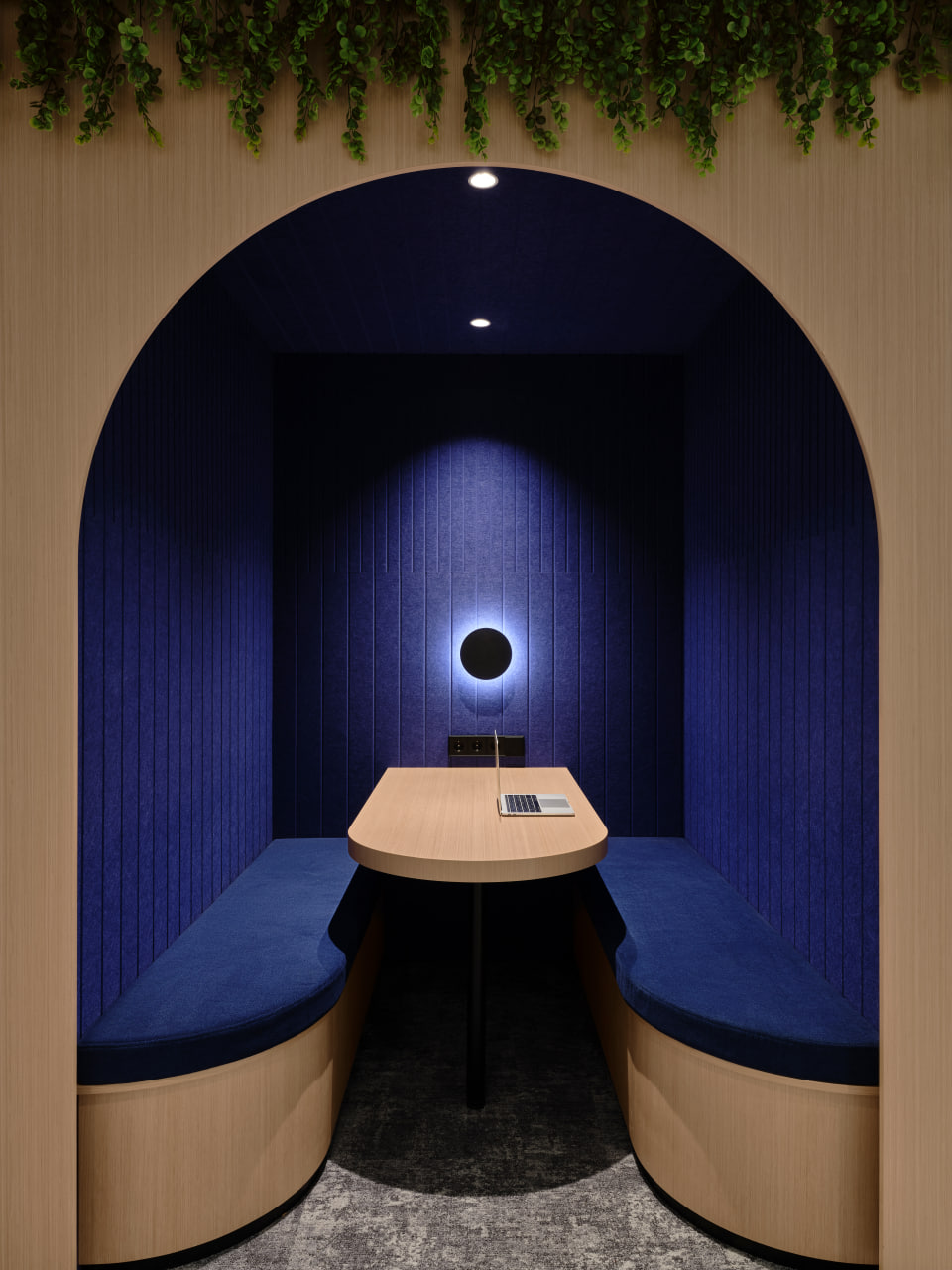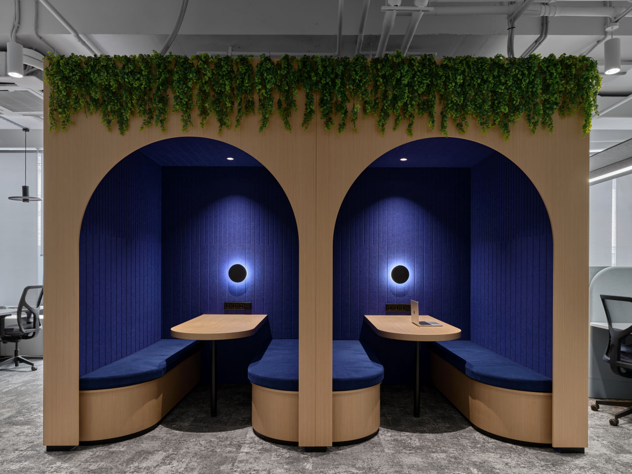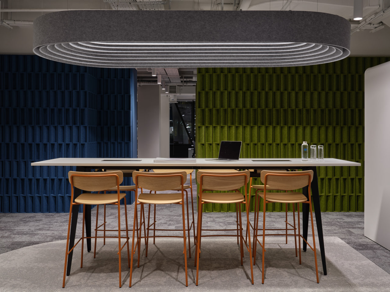 Гибкие трансформируемые решения, ставшие трендом последних лет, обеспечивают возможность оперативной смены обстановки и agile-процессов. Тихие и уединенные зоны для работы позволяют сосредоточиться на важных задачах или отдохнуть в течение рабочего дня. Наличие зон для рекреации и большого числа рабочих мест разного формата позволили добиться комфортной атмосферы для сотрудников разных поколений, в том числе и поколения Z.